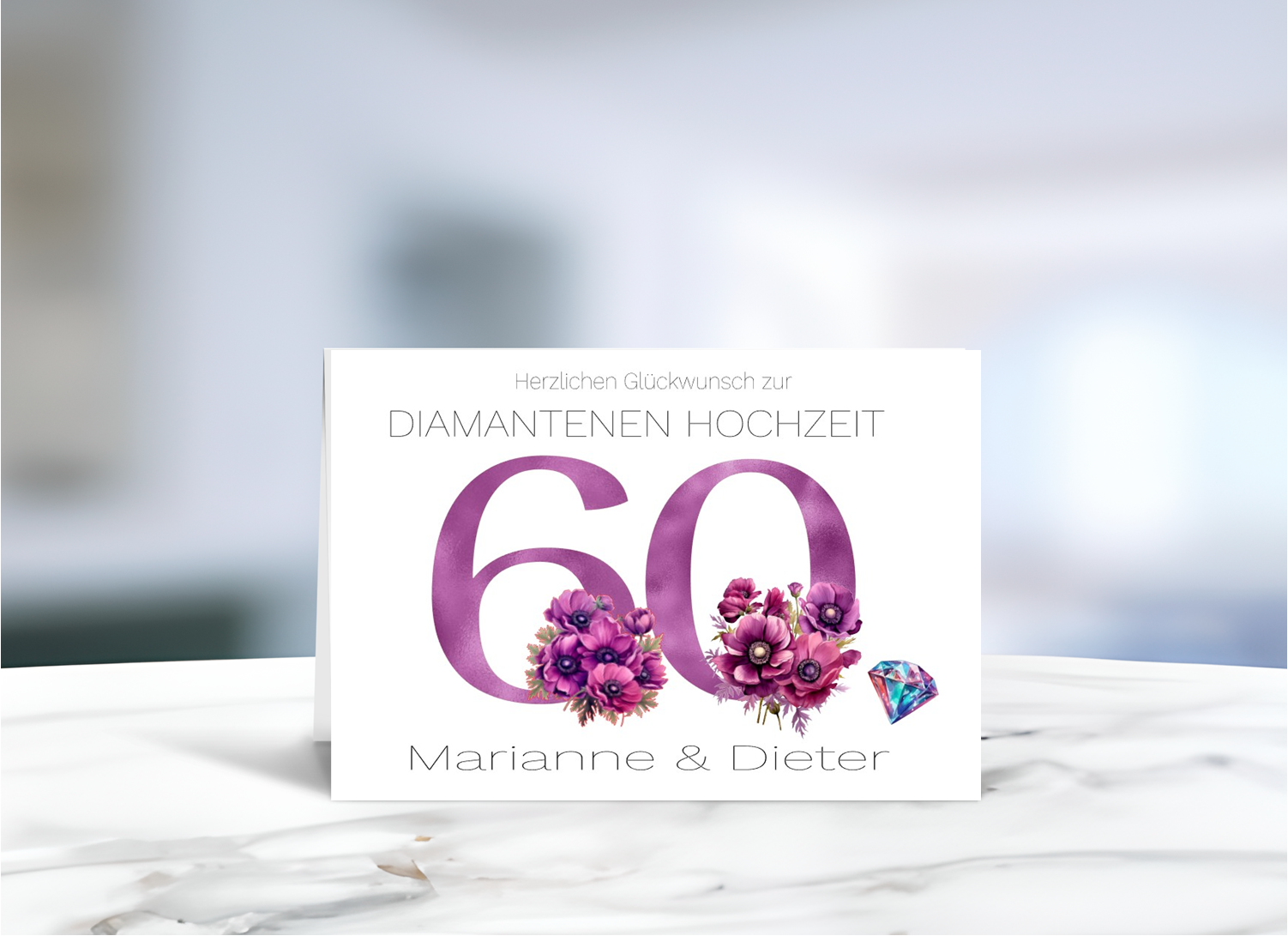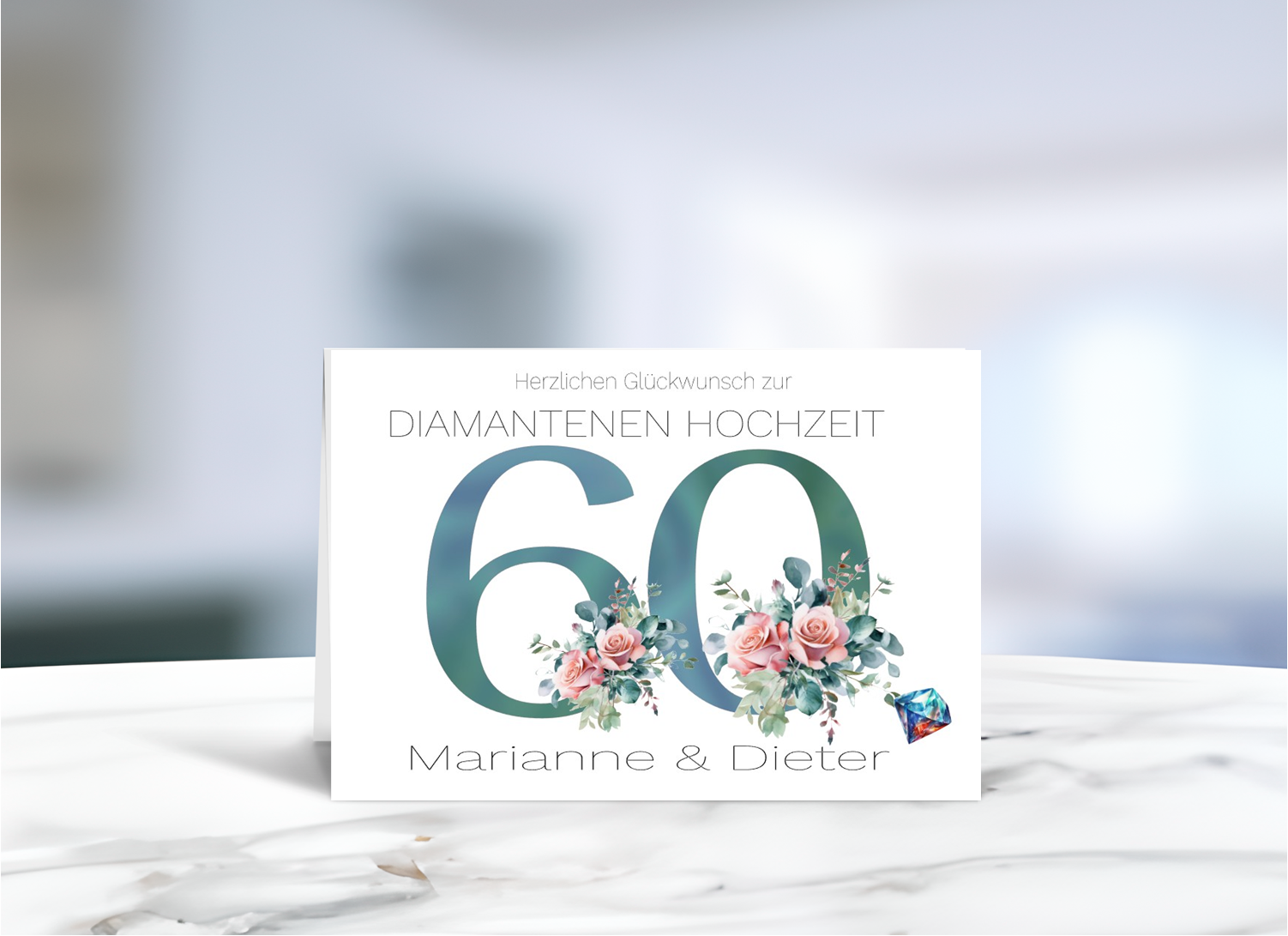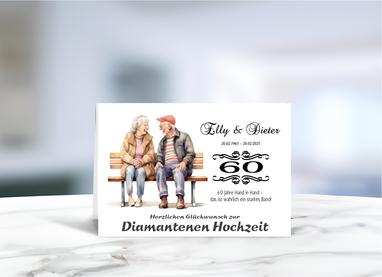 Meine Karten zur Diamantenen Hochzeit sind liebevoll gestaltet und individuell personalisierbar.