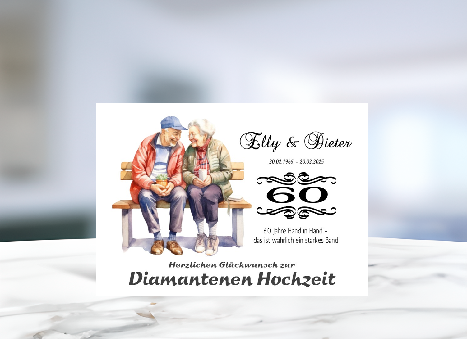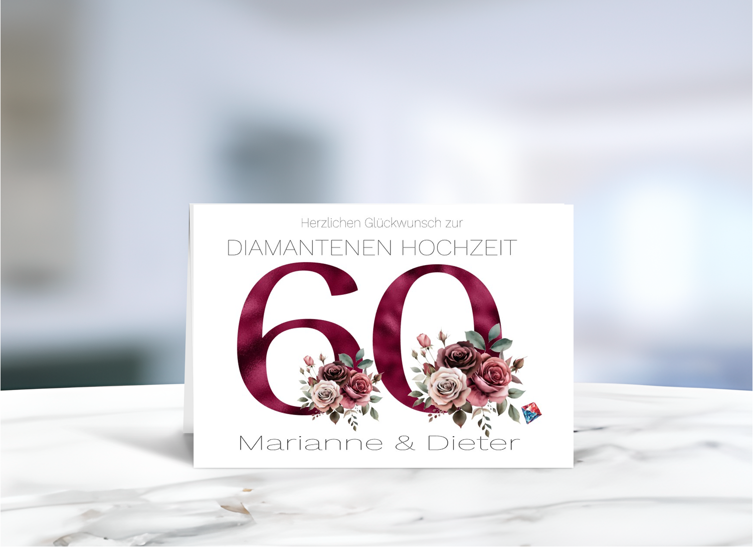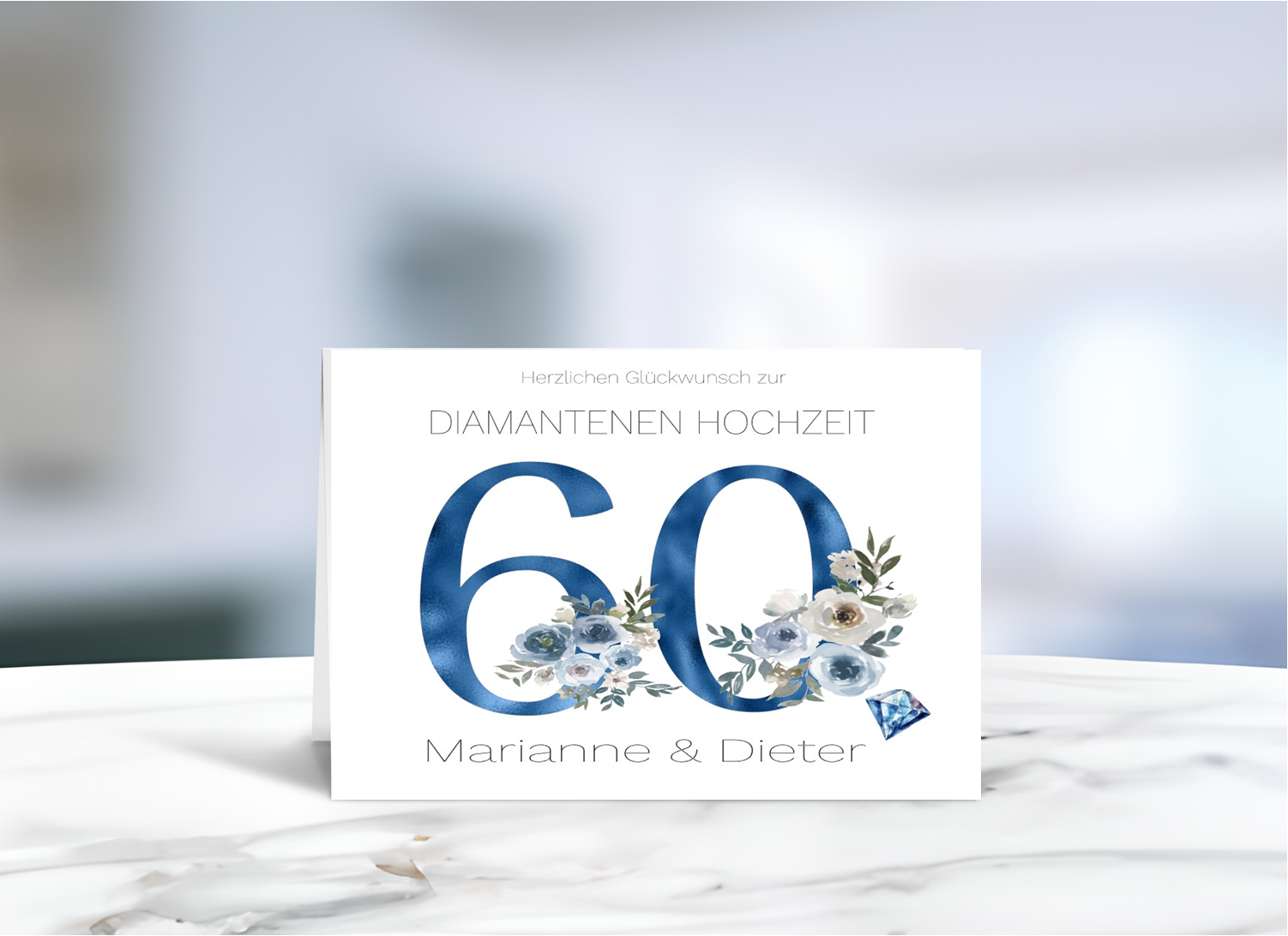 Meine Karten zur Diamantenen Hochzeit sind liebevoll gestaltet und individuell personalisierbar.