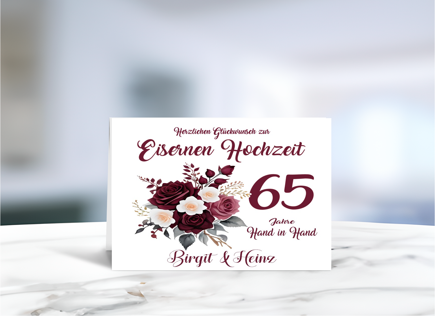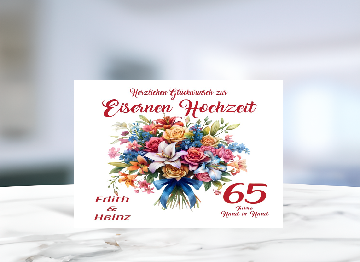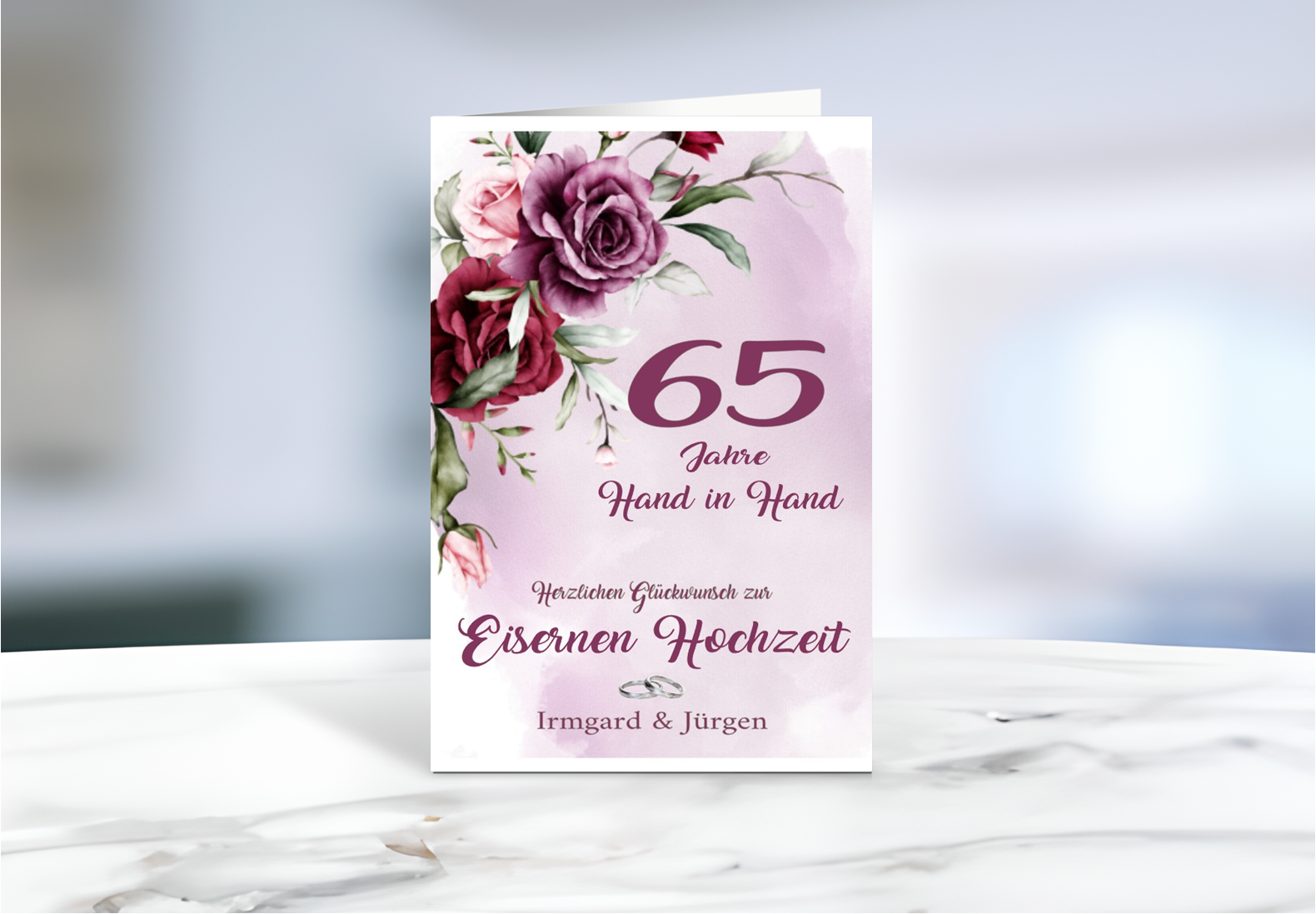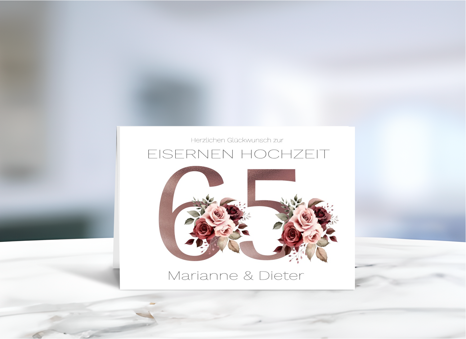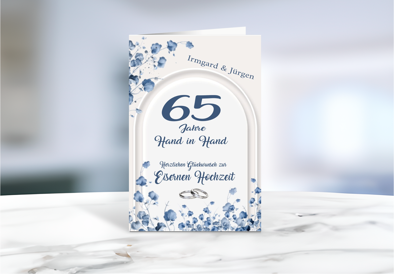 Elegante Grußkarte zur Eisernen Hochzeit mit Blumenmotiv und persönlicher Namensgestaltung