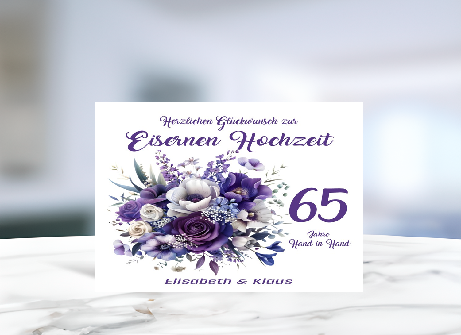 Liebevoll gestaltete Grußkarte zur Eisernen Hochzeit – 65 Jahre Liebe, Vertrauen und gemeinsamer Lebensweg